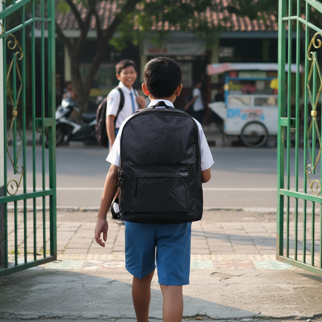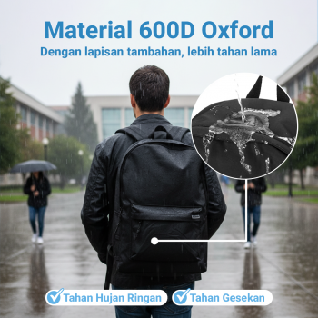 | Material Tangguh Tahan Lama Material 600D Oxford tidak hanya kuat menahan beban buku dan perlengkapan sekolah, tetapi juga tahan terhadap percikan air dan mudah dibersihkan. |