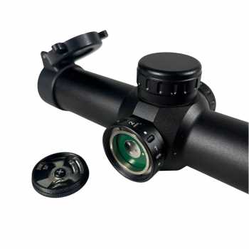 | Reticle IR FFP (Illuminated First Focal Plane) Scope ini menggunakan reticle IR FFP (First Focal Plane dengan illumination), di mana ukuran reticle akan ikut berubah saat pembesaran (zoom) disesuaikan. Dengan sistem FFP, skala reticle (mil-dot / holdover) tetap akurat di semua level zoom, sehingga ideal untuk perhitungan jarak dan koreksi tembakan yang presisi. Fitur illuminated reticle (IR) membantu garis bidik tetap jelas dan mudah terlihat pada kondisi cahaya rendah atau latar target gelap, dengan tingkat kecerahan yang dapat diatur sesuai kebutuhan. |