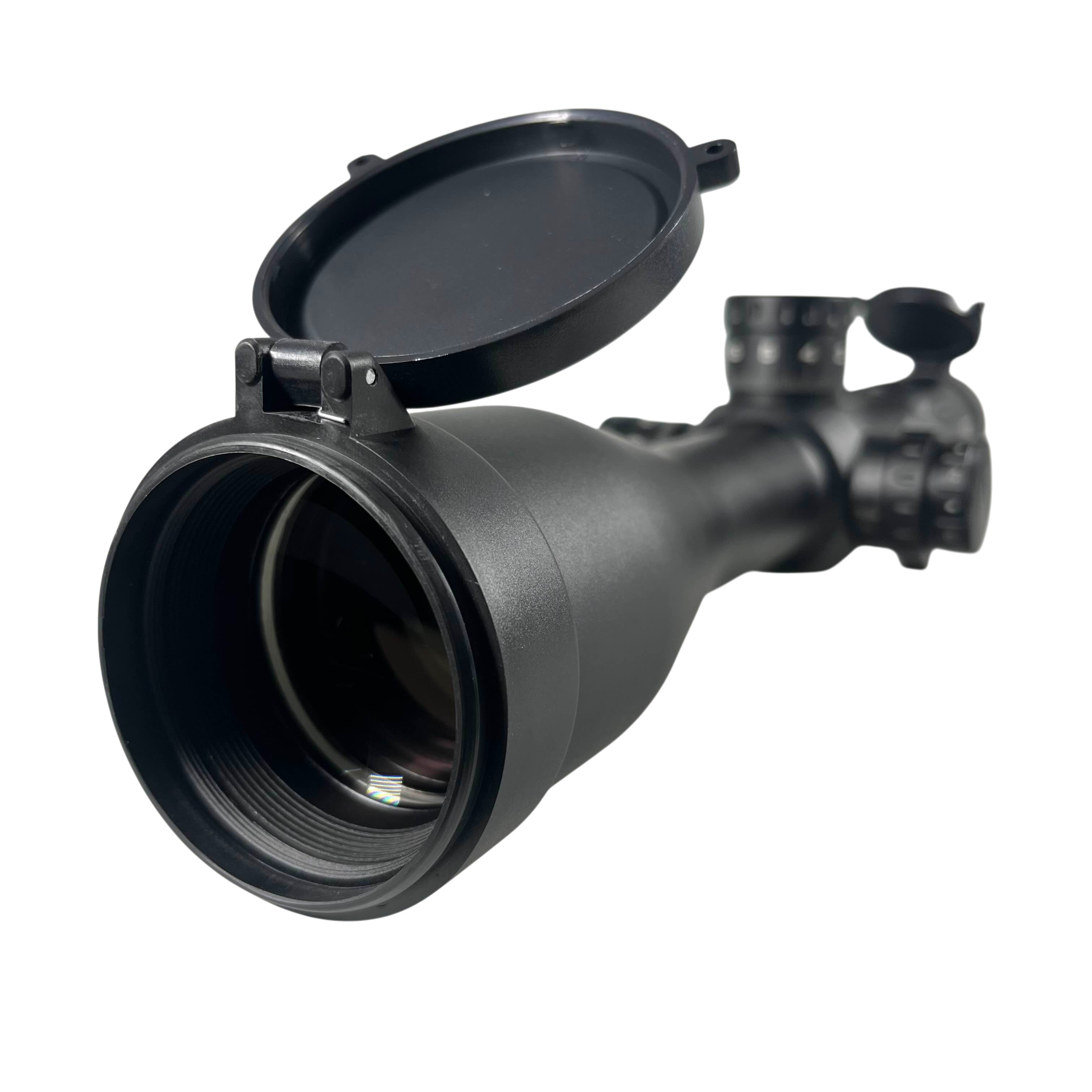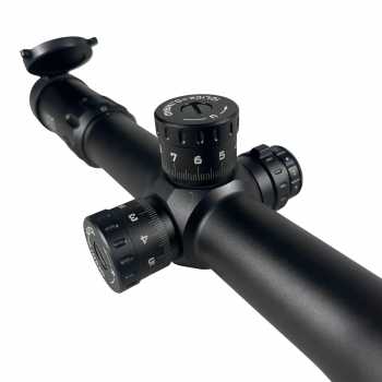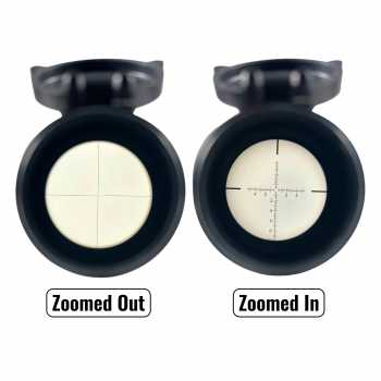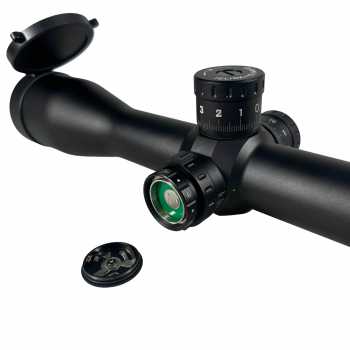 | Reticle IR FFP (Illuminated First Focal Plane) Scope ini menggunakan reticle IR FFP (First Focal Plane dengan illumination), di mana ukuran reticle akan ikut berubah saat pembesaran (zoom) disesuaikan. Dengan sistem FFP, skala reticle (mil-dot / holdover) tetap akurat di semua level zoom, sehingga ideal untuk perhitungan jarak dan koreksi tembakan yang presisi. Fitur illuminated reticle (IR) membantu garis bidik tetap jelas dan mudah terlihat pada kondisi cahaya rendah atau latar target gelap, dengan tingkat kecerahan yang dapat diatur sesuai kebutuhan. |