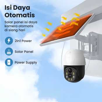 | Isi Daya Otomatis Kamera CCTV ini dilengkapi solar panel yang dapat mengisi daya secara otomatis di siang hari. Pasang pada area yang terkanar sinar matahari langsung agar dapat mengisi daya dengan maksimal. |