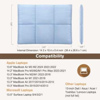 | Kompatibel Laptop 13.3-14 Inch Dengan ukuran internal 36.4 x 26.6 x 1 cm, sleeve ini dirancang pas untuk laptop berukuran 13.3 hingga 14 inch. Memberikan fit yang pas, tidak terlalu longgar, dan tetap nyaman digunakan untuk berbagai jenis laptop dengan ukuran serupa. |