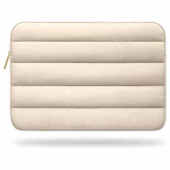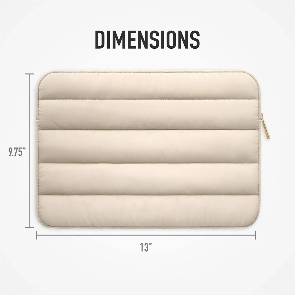 Laptop sleeve puffy untuk laptop 13-14 Inch ukuran 35 x 24 cm, hadir dengan bantalan puffy quilted anti benturan, lapisan dalam plush lembut anti gores, serta material nylon luar water resistant yang melindungi dari cipratan air. Desainnya fleksibel dan kompresibel sehingga muat di tas apapun, dilengkapi zipper emas elegan stylish untuk dibawa ke mana saja.