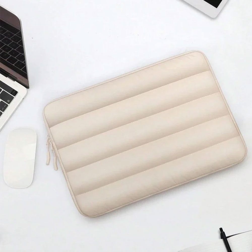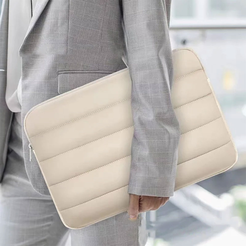 | Bantalan Puffy Proteksi Maksimal Desain quilted dengan padding tebal melindungi laptop dari benturan, goresan, dan tekanan saat dibawa. Dilengkapi ritsleting emas yang halus dan kuat, mudah dibuka dengan satu tangan. Perlindungan menyeluruh di semua sisi membantu mengurangi risiko kerusakan saat digunakan harian maupun bepergian. |