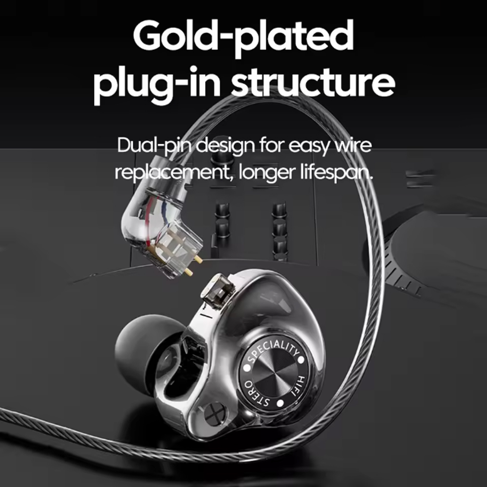 | Suara yang Luas dan Realistis Dibekali teknologi 9D panoramic stereo surround, earphone in-ear mampu menghadirkan ruang suara yang lebih luas dan realistis. Setiap detail audio terdengar lebih jelas, dari dentuman bass yang dalam hingga treble yang tajam dan bersih. Efek suara terasa mengelilingi telinga, memberikan sensasi mendengarkan yang lebih imersif, baik saat menikmati musik favorit, menonton film, maupun bermain game. |