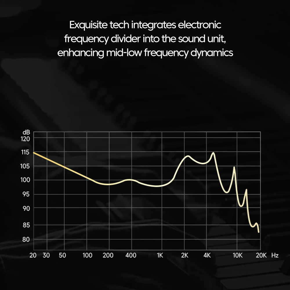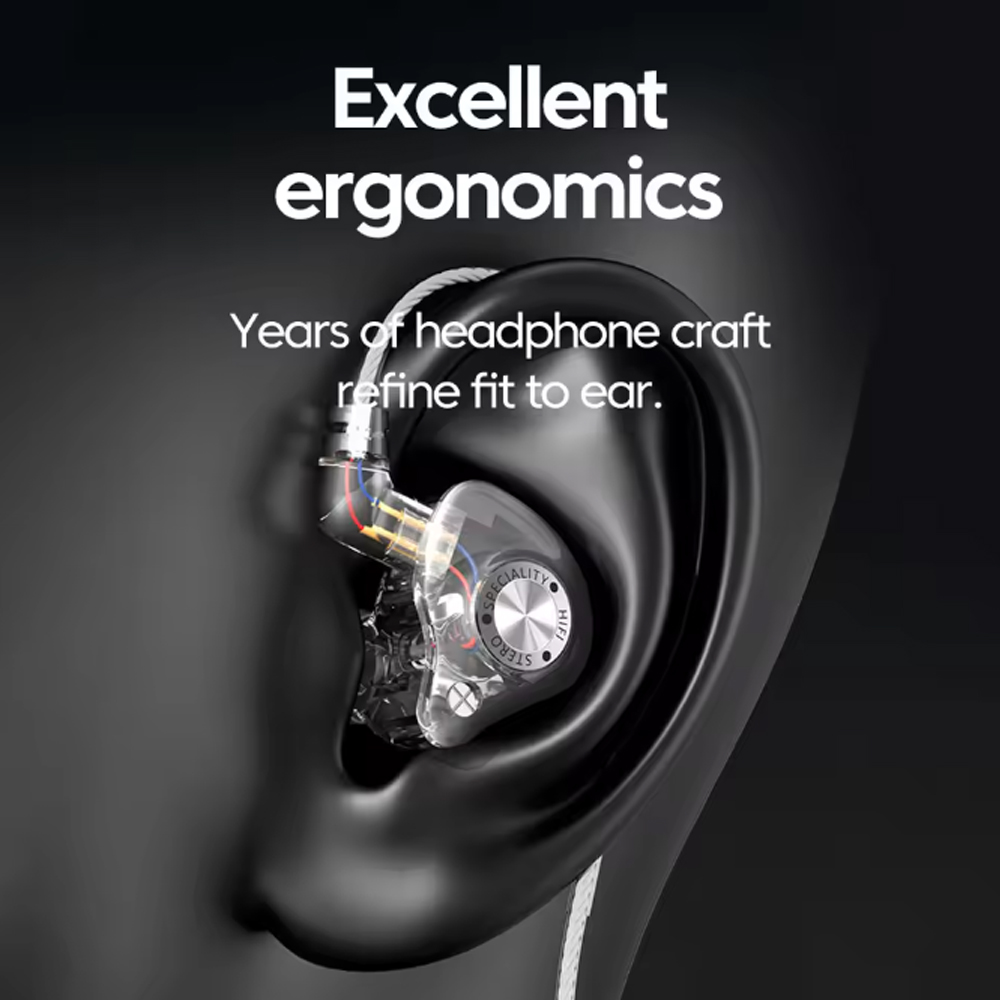 | Kualitas Audio Jernih dan Seimbang Driver berkualitas tinggi dirancang untuk menghasilkan suara yang seimbang di seluruh rentang frekuensi. Bass terasa kuat namun tidak berlebihan, mid tetap natural, dan high frequency terdengar terang tanpa menusuk telinga. Hasilnya adalah karakter suara HiFi yang nyaman untuk penggunaan jangka panjang. |