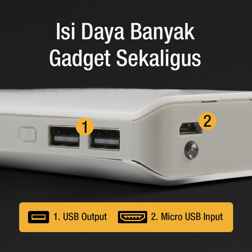| Isi Daya Banyak Gadget Sekaligus Dilengkapi 2 port USB Type A, memungkinkan pengisian daya dua perangkat sekaligus. Output hingga 5 V 2.1 A membantu pengisian daya lebih stabil dan efisien. Hemat waktu saat mengisi beberapa gadget bersamaan. |
