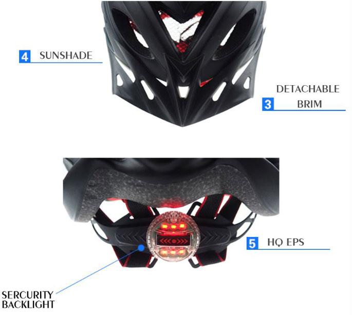| Lampu Belakang Helm sepeda ini sudah dilengkapi dengan lampu belakang atau backlaight yang sangat berguna untuk keamanan Anda saat berkendara di malam hari. |