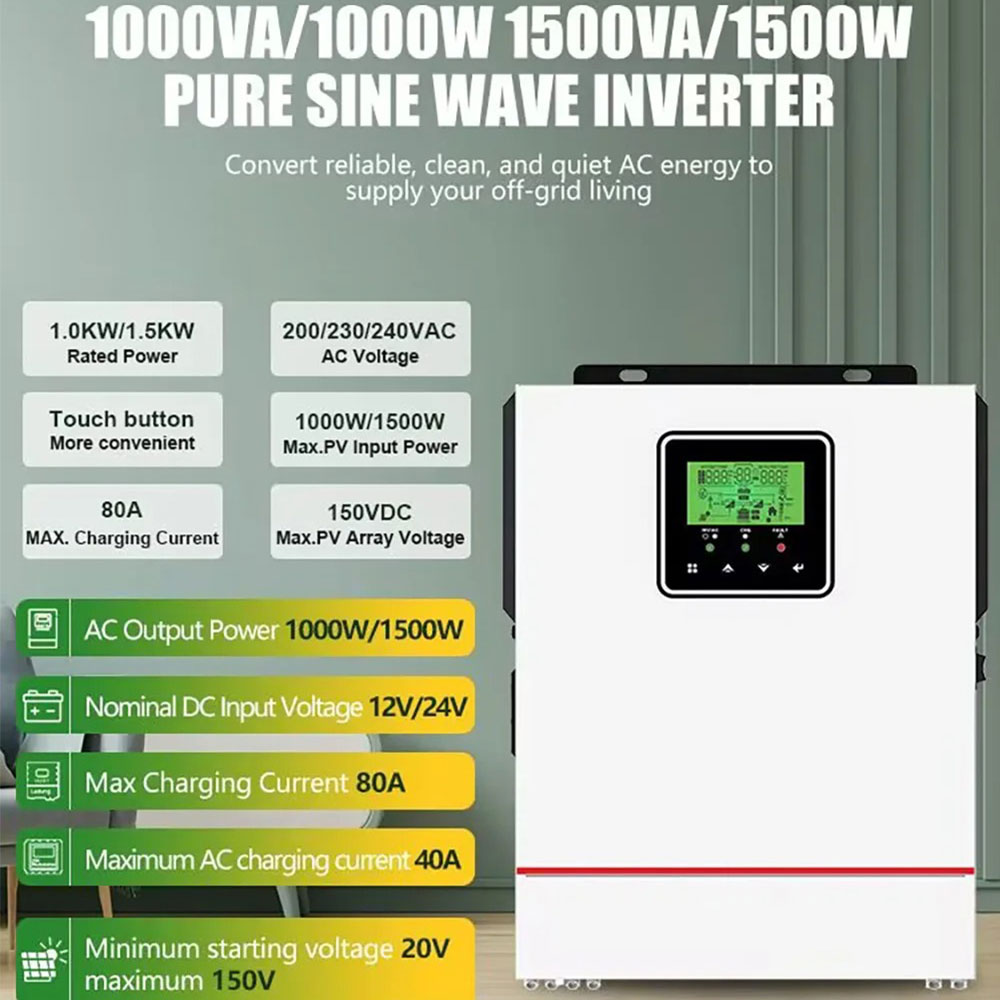 Hybrid solar inverter 1000W dengan teknologi pure sine wave yang menghasilkan listrik stabil dan aman untuk berbagai perangkat elektronik. Dilengkapi MPPT solar controller 40 A, sistem on dan off grid, lengkap dengan baterai 12 V lithium, serta dilengkapi proteksi layar LCD untuk monitoring. Cocok untuk rumah, kantor, UMKM, dan cadangan listrik saat pemadaman.