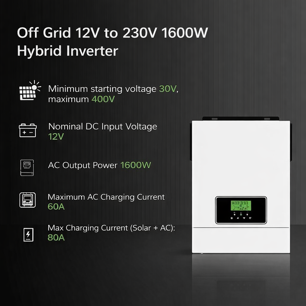 Inverter solar NML-2000-12 dari victor adalah solusi kontrol daya andal untuk sistem panel surya off-grid. Mengususng sistem hybrid, inverter ini berfungsi mengubah arus DC menjadi AC sekaligus mengoptimalkan pengisian daya dari panel surya. Dengan daya 1.6 KW (1600 W) inverter ini cocok untuk kebutuhan listrik rumah, kantor, UMKM, serta sebagai cadangan listrik saat pemadaman. Dengan dukungan 12 V untuk penyimpanan energi surya.