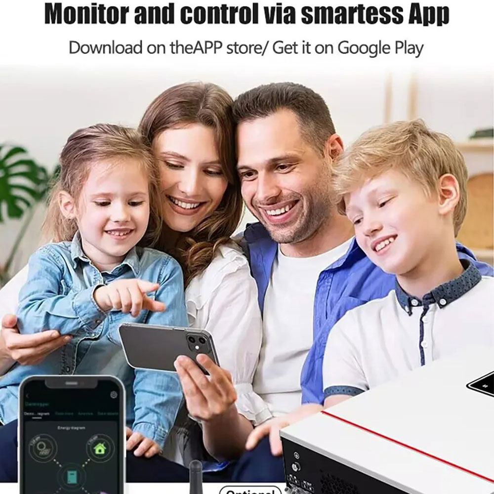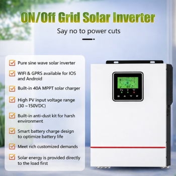 | Pengaturan Sumber Listrik Inverter ini dirancang dengan sistem hybrid otomatis yang dapat bekerja menggunakan panel surya, baterai, serta sumber listrik cadangan dalam satu perangkat. Saat energi surya tersedia, inverter akan menggunakannya sebagai sumber utama. Ketika daya surya berkurang, sistem ini akan berpindah otomatis ke baterai atau sumber cadangan, sehingga penyimpanan listrik tetap stabil tanpa perlu pengaturan manual. |