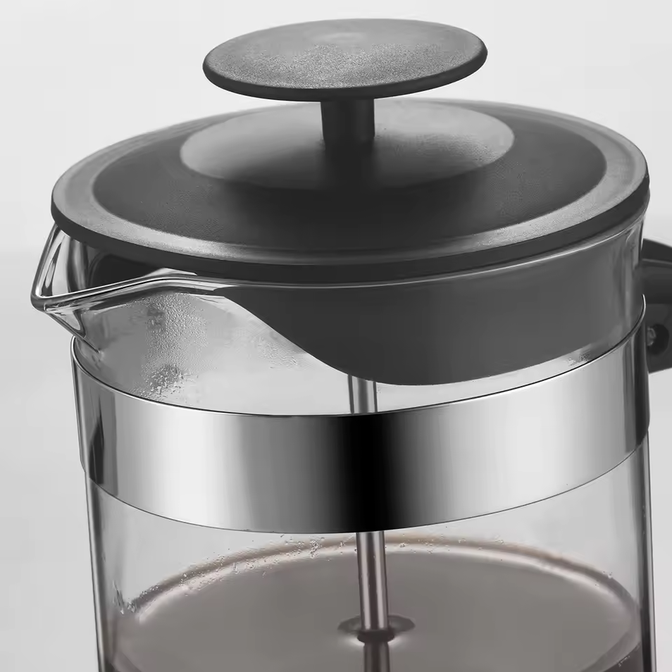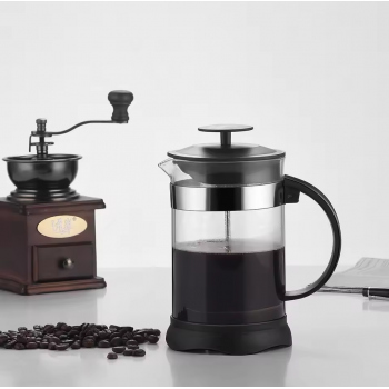 | Bahan Kaca dengan Stainless Steel French press ini terbuat dari bahan kaca borosilikat transparan sehingga Anda dapat melihat isi di dalam teko ini. Selain itu, pada bagian bawah tangkai penekan terdapat saringan stainless steel untuk menyaring bubuk kopi agar tetap berada di bawah dan tidak membuat minuman kopi Anda berlumur bubuk kopi. |