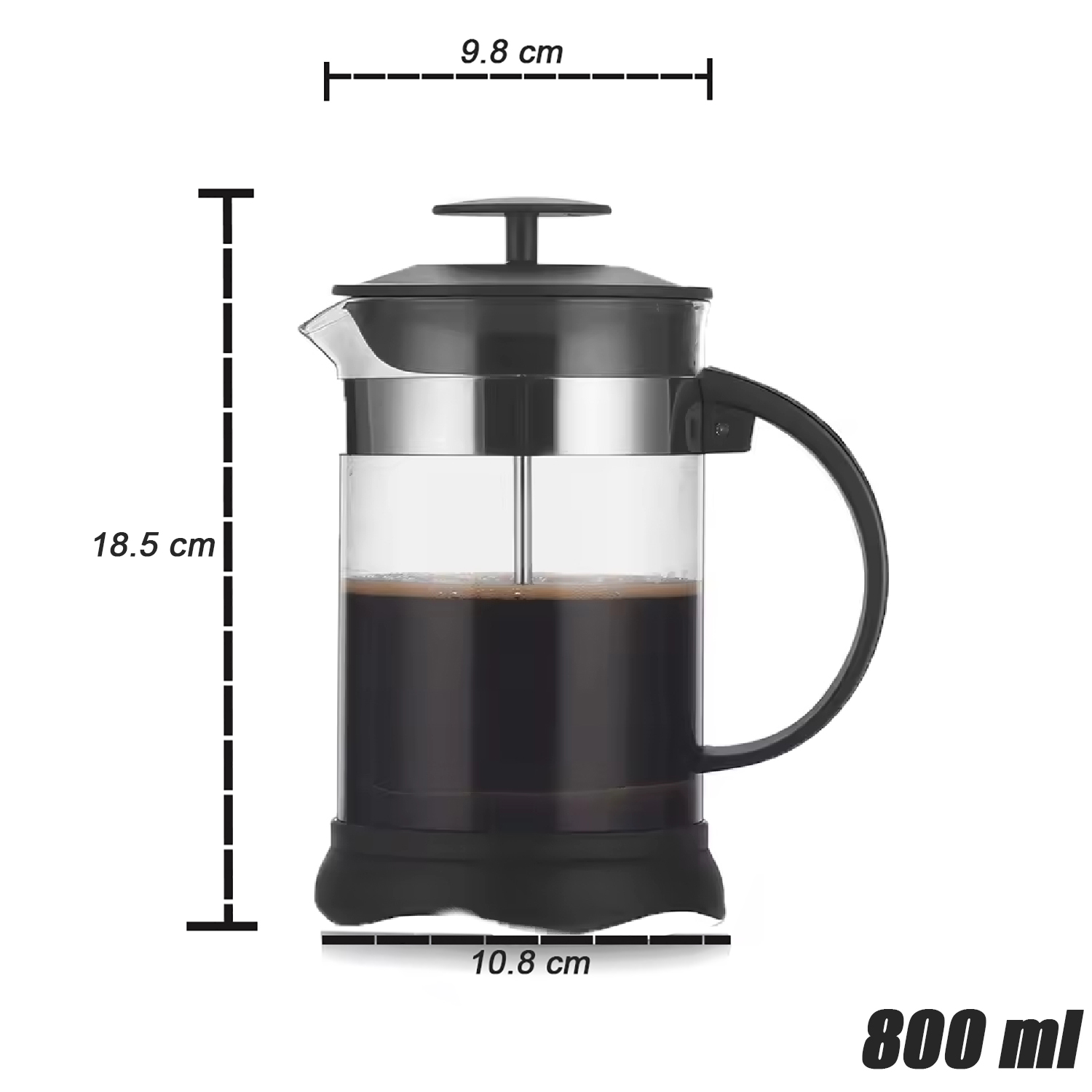 Kapasitas 1000 ml: - Diameter Mulut: 9.8 cm - Diameter Alas: 10.8 cm - Diameter Filter: 8.8 cm - Tinggi Total: 21 cm Kapasitas 800 ml: - Diameter Mulut: 9.8 cm - Diameter Alas: 10.8 cm - Diameter Filter: 8.8 cm - Tinggi Total: 18.5 cm