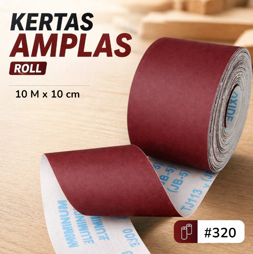 Kertas amplas roll terbuat dari emery cloth berkualitas tinggi yang memiliki struktur kain kuat dan tidak mudah sobek. Material ini lebih tahan dibanding kertas amplas biasa sehingga cocok untuk penggunaan intensif di workshop.