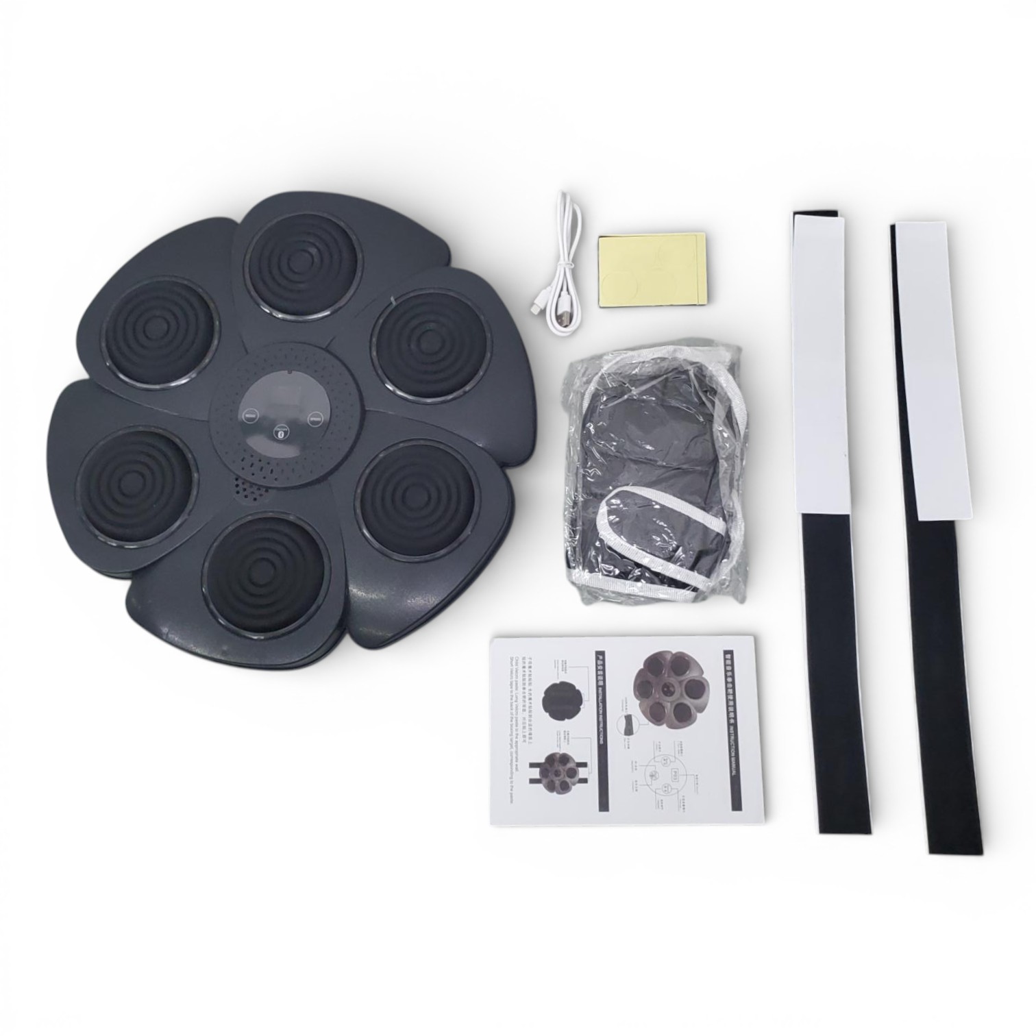 Samsak tinju musik VKTECH dengan 6 panel target, speaker Bluetooth, 18 kecepatan, baterai 1200 mAh, praktis dan tahan lama.