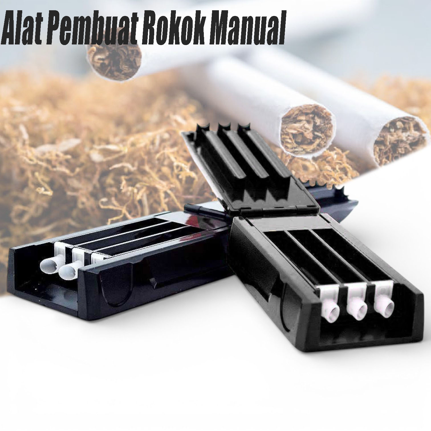 Alat ini berfungsi untuk memasukkan tembakau rokok ke dalam tabung rokok kertas secara manual. Untuk Anda yang ingin mencoba membuat rokok sendiri, maka dapat menggunakan alat ini untuk mempermudah proses pembuatan rokok manual. Anda dapat langsung mengisi 3 buah tabung rokok dengan tembakau menggunakan alat ini.