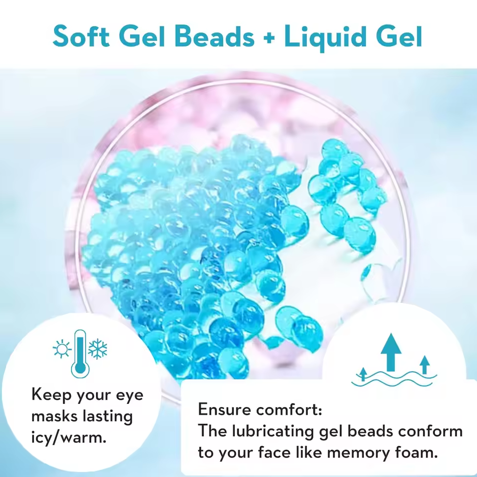 | Material Soft Gel untuk Kenyamanan Maksimal Dibuat dengan material soft gel di setiap sisi masker, memberikan efek pijatan lembut yang menenangkan pada area mata. Gel ini membantu mengurangi tekanan pada mata dan memberikan sensasi relaksasi yang nyaman, sehingga tidur Anda menjadi lebih nyenyak. |