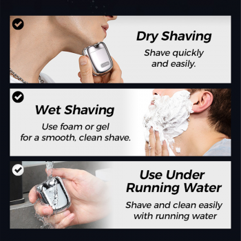 | Cukur Basah & Kering Alat cukur kumis yang tidak tahan air sulit dibersihkan dan rentan rusak jika terkena cipratan. Alat cukur kumis ini berstandar ketahanan air IPX6 sehingga seluruh body perangkat bisa dicuci di bawah air mengalir. Mendukung cukur kering maupun cukur basah dengan busa atau gel cukur untuk hasil yang lebih lembut. |