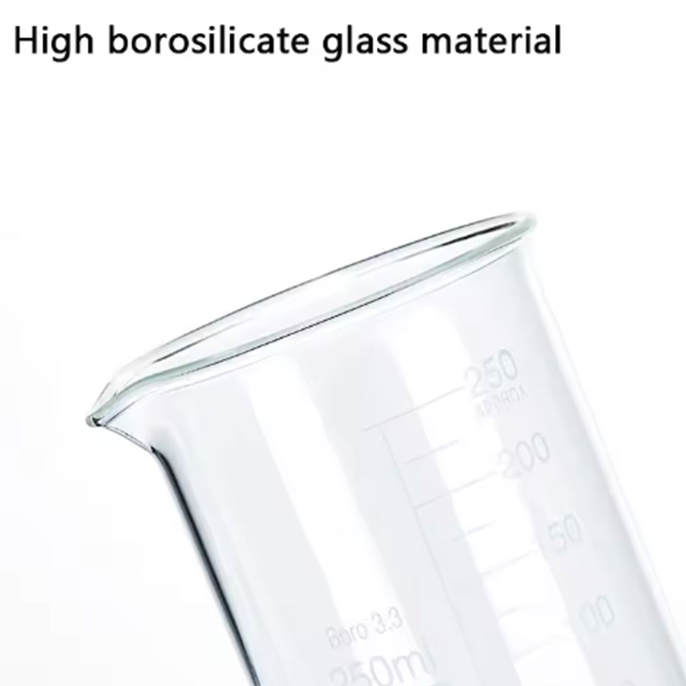 | Borosilicate Glass Tahan Panas 400°C Gelas ukur kaca ini mampu menahan suhu tinggi hingga 400°C berkat material borocilicate glass. Memungkinkan penggunaan pada cairan panas tanpa takut gelas retak atau pecah. Kaca lebih kuat, tidak mudah keruh dan memiliki umur pakai panjang dibanding kaca biasa. Sangat ideal untuk eksperimen kimia, pemanasan cairan, maupun proses laboratorium lainnya. |