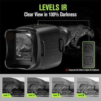 Rasakan pengalaman melihat dalam gelap dengan teropong monokular digital infrared night vision full HD 1920 x 1080 pixels dari WILDMAN. Dirancang untuk penggunaan siang dan malam hari, layar 2 Inch TFT HD sangat cocok untuk aktivitas outdoor. Infrared 850 nm dan 9 level pengaturan IR, zoom digital hingga 16 kali dan desain yang ergonomis membuat pengamatan jarak jauh Anda menjadi lebih detail dan stabil. Cocok untuk kebutuhan camping, hunting hingga eksplorasi alam.