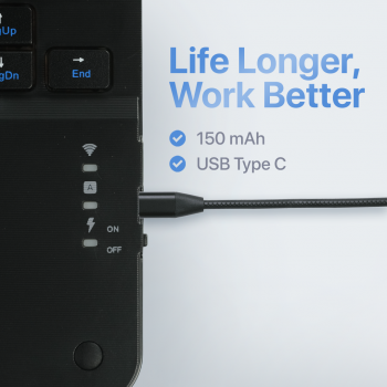 | Baterai Rechargeable Menggunakan baterai rechargeable berkapasitas 150 mAh yang hemat daya. Mampu bertahan hingga 3 jam pemakaian non-stop, sangat cocok untuk aktivitas kerja intens tanpa sering mengisi ulang |