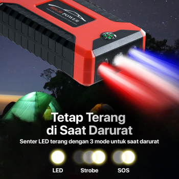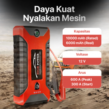 | Daya Kuat Nyalakan Mesin Menawarkan kapasitas rated 10000 mAh dan real 6000 mAh, jumper aki mobil ini dapat menghasilkan arus hingga 600 A untuk menyalakan mesin mobil yang mati. Kini Anda dapat langsung menghidupkan mesin mobil hanya dengan 1 alat saja. |