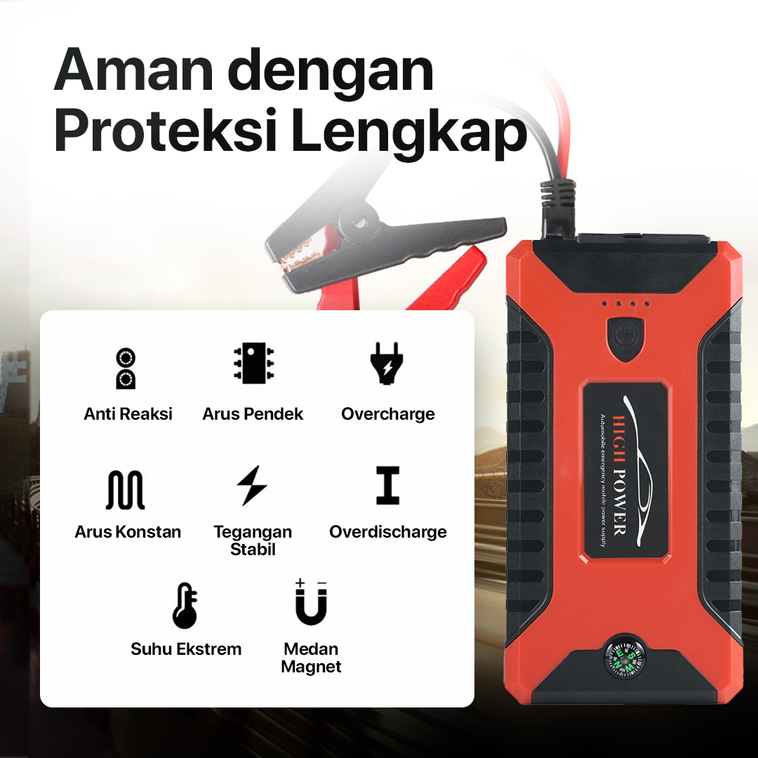 | Aman dengan Proteksi Lengkap Fitur proteksi lengkap memastikan proses menyalakan mobil tetap aman. Mulai dari proteksi arus pendek hingga medan, kini Anda dapat menyalakan mobil mogok tanpa khawatir terjadi korsleting. |