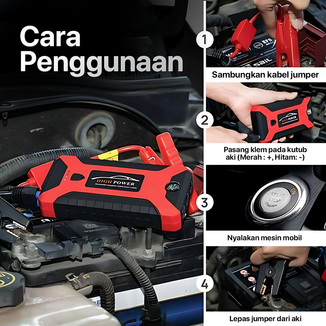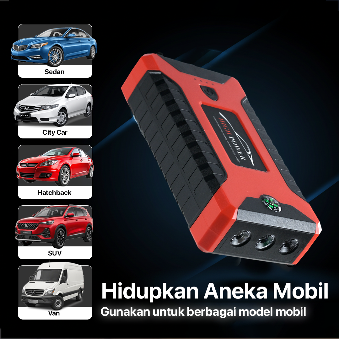 | Hidupkan Aneka Mobil Dapat menghasilkan output 12 V, jumper aki ini dapat digunakan dengan berbagai model mobil yang ada di pasaran. Pastikan mobil Anda memiliki sistem kelistrikan 12 V untuk mencegah kerusakan atau korsleting. |