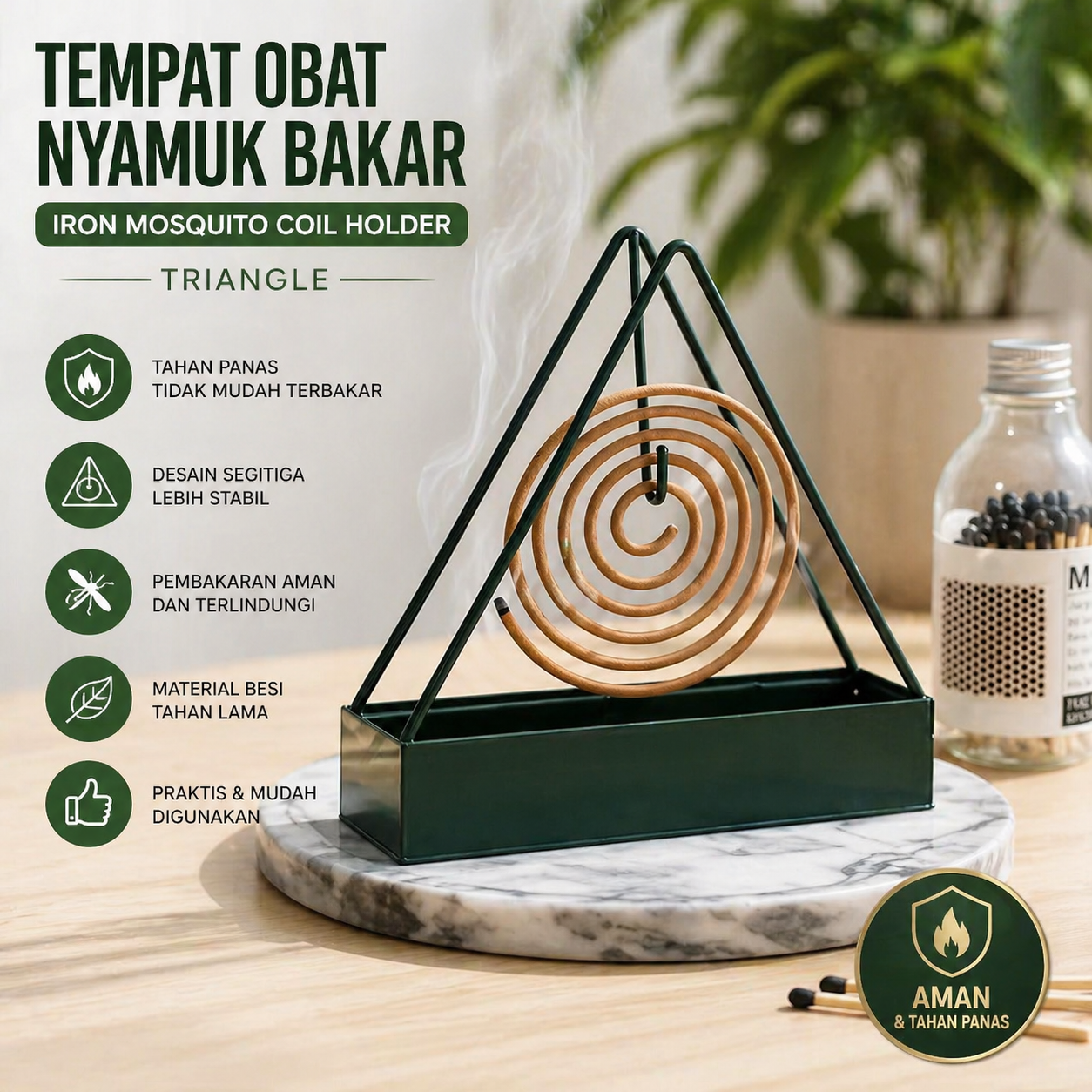 | Material Besi Kuat Tahan Api Tempat obat nyamuk bakar ini terbuat dari material besi yang kuat sehingga dapat digunakan dalam jangka panjang. Penggunaan material ini juga membuat produk dari WOMLEX tetap aman meski terkena percikan api karena tidak akan menyebabkan kebakaran. |