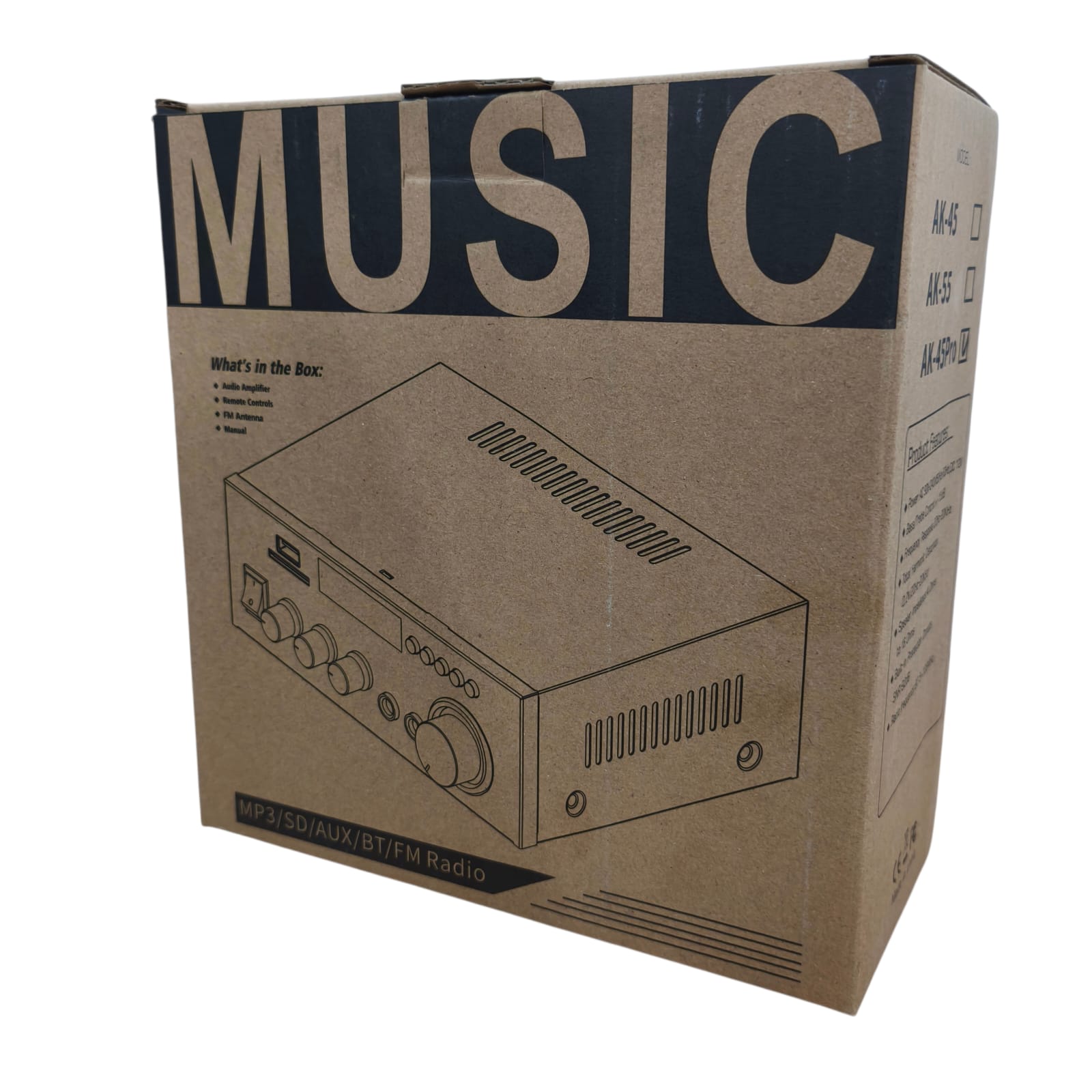 | Kualitas HiFi, Distorsi Rendah Dengan distortion rate hanya 0.5% dan signal-to-noise ratio 85 dB, amplifier ini memastikan suara tetap bersih, minim noise, dan detail tetap terjaga. Rentang frekuensi 20 Hz–20 kHz menghadirkan keseimbangan bass yang dalam dan high frequency yang jernih, memberikan pengalaman audio yang imersif dan nyaman didengar dalam waktu lama. |