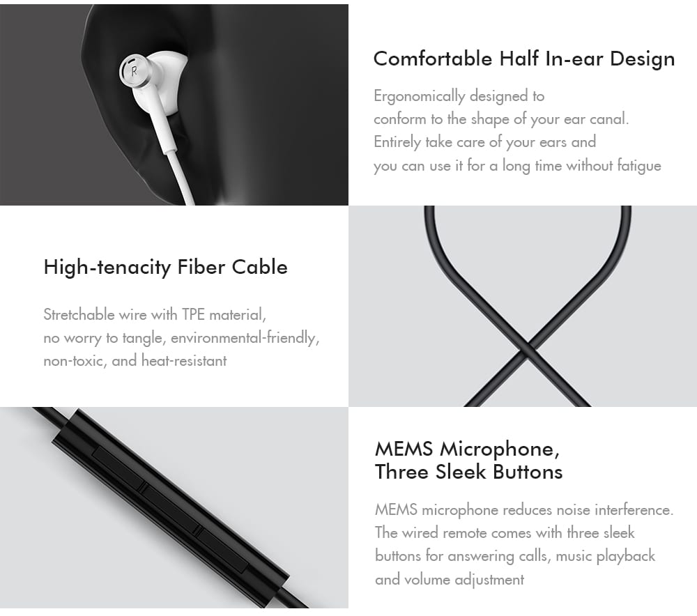 Earphones 3.5mm Jack dari Xiaomi ini hadir dengan suara yang jernih, ketebalan komponen kabel dalam yang memastikan earphone ini tidak mudah rusak seperti earphone lainnya. Earphone ini juga dilengkapi dengan mikrofon sehingga memungkinkan Anda untuk menjawab panggilan telepon melalui headset.