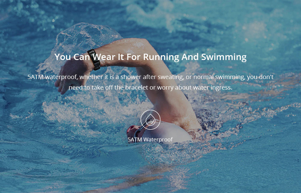 | 5 ATM Waterproof Tak perlu lagi khawatir hujan atau tetesan air keringat Anda dapat merusak jam tangan pintar ini karena telah tersertifikasi dengan waterproof 5ATM. Bahkan, Anda bisa berenang tanpa perlu melepas jam tangan ini.