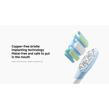 | Teknologi Bulu Sikat Higienis dan Inovatif Produk ini menggunakan teknologi Copper-free bristle implanting yang menanam bulu sikat tanpa menggunakan material logam sama sekali. Hal ini membuat kepala sikat lebih sehat, higienis, dan bebas dari risiko karat meskipun sering terpapar air di dalam mulut. Bagian tengahnya juga memiliki desain Dual spiral column yang dirancang khusus untuk membersihkan permukaan gigi secara menyeluruh demi perawatan gusi yang lebih baik. |