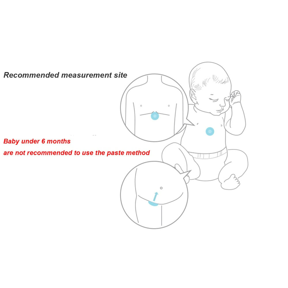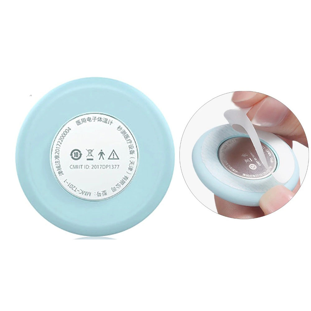 Termometer untuk mengukur suhu badan. Dengan bentuk yang kecil dan dapat ditempel pada bagian badan membuat termometer ini cocok untuk mengukur suhu badan bayi. Termometer ini terhubung ke smartphone dan pada aplikasi dismartphone, Anda dapat melihat suhu bayi secara real time.