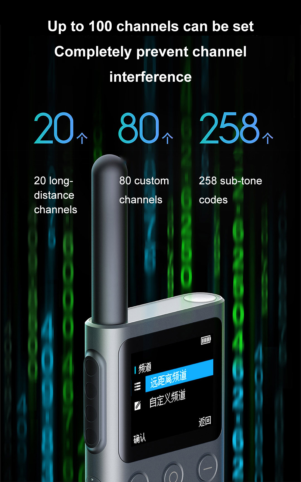 | Rentang Frekuensi Luas Walkie talkie dari Xiaomi Mijia mendukung frekuensi lebar dalam kisaran 430000 MHz hingga 440000 MHz. Didukung hingga 100 channel, alat ini sangat ideal digunakan untuk komunikasi dalam tim besar saat beraktivitas di lapangan. |