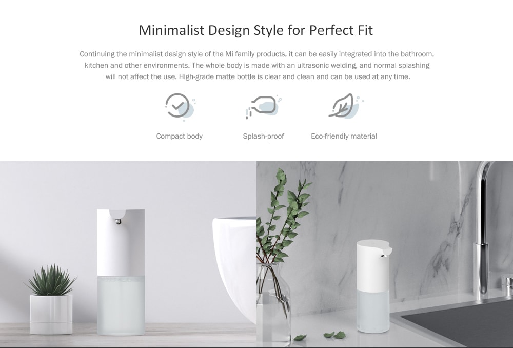 | Minimalist Design Seperti produk-produk Xiaomi lainnya, Mesin dispenser sabun ini juga memiliki desain minimalis modern sehingga dapat berbaur dengan dekorasi rumah Anda dengan sangat baik.