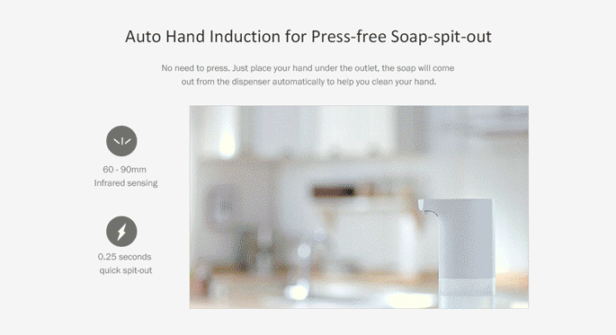 Xiaomi menghadirkan lagi perangkat canggih untuk keperluan rumah tangga Anda. Kini Xiaomi membuat mesin dispenser sabun otomatis dimana sabun akan keluar secara otomatis saat tangan diletak pada bagian sensor. Tidak perlu lagi memompa sabun cuci tangan secara manual, hal ini juga menghemat penggunaan sabun karena sabun yang keluar akan selalu konsisten.