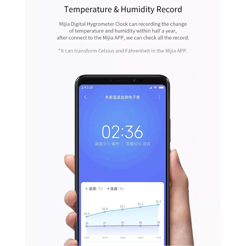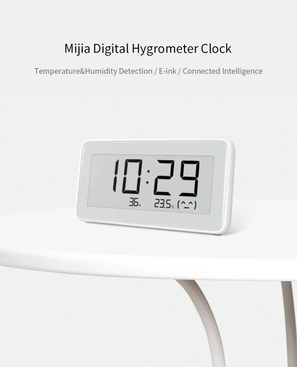 Xiaomi Mijia ini mengukur suhu ruangan dan juga kelembaban udara.