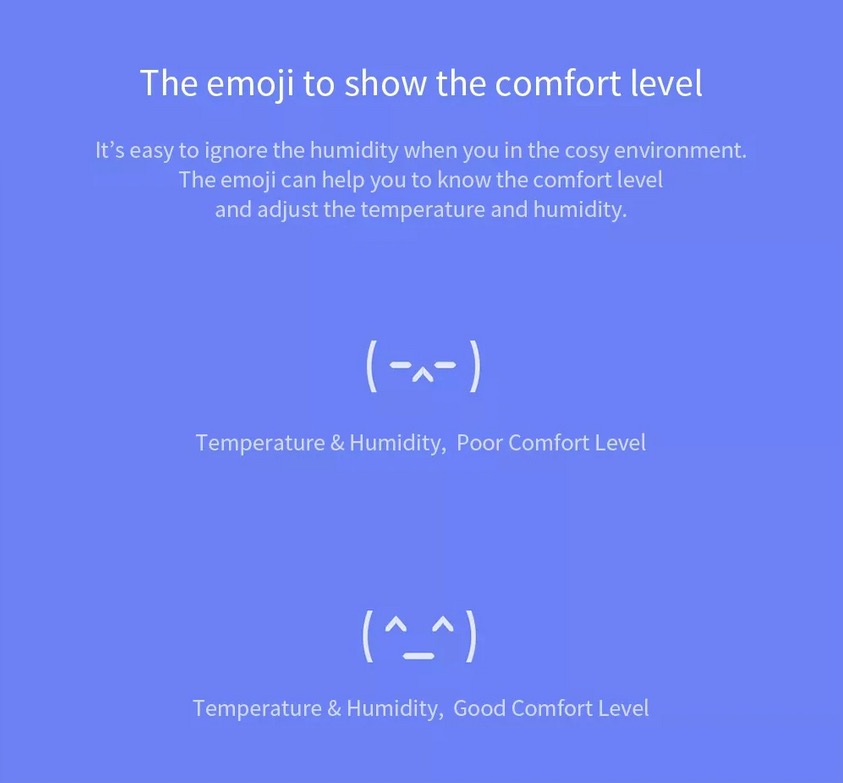 Perbedaan termometer ini dari pengukur suhu yang lain adalah terdapat emoticon yang lucu, dapat berubah-rubah sesuai dengan suhu ruangan secara rela time, menambahkan perhatian khusus untuk suhu ruangan keluarga Anda dengan lebih mudah.