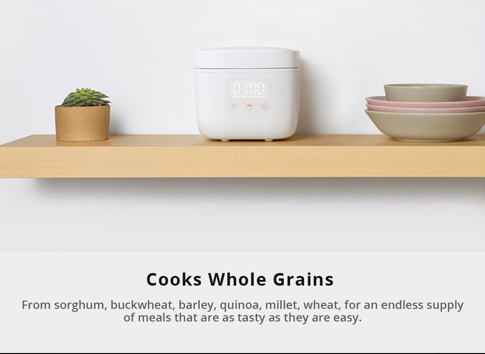 | Elegant and Minimalistic Design Seperti filisofi desain produk Xiaomi lainnya, MiJia Rice Cooker dibalut dengan bodi plastik berwarna putih dengan lengkungan di setiap sudutnya. Hal ini membuatnya terlihat minimalis tanpa menghilangkan kesan elegan. Secara desain tentu tak kalah menarik dari brand ternama seperti Yongma dan Philips,