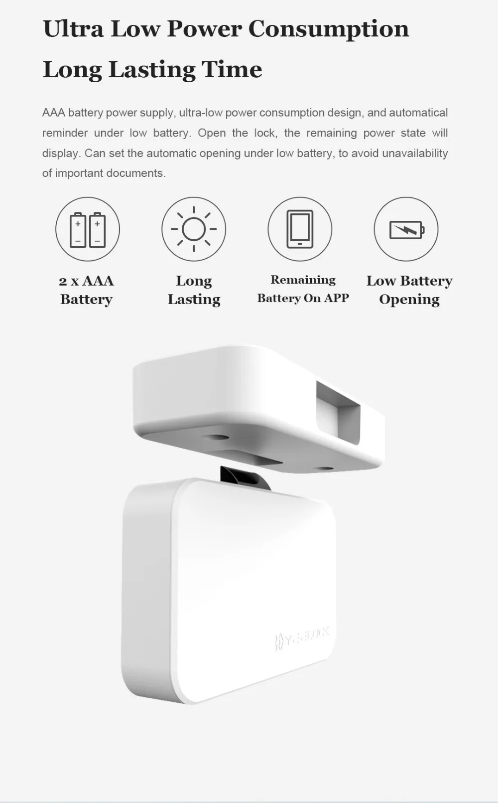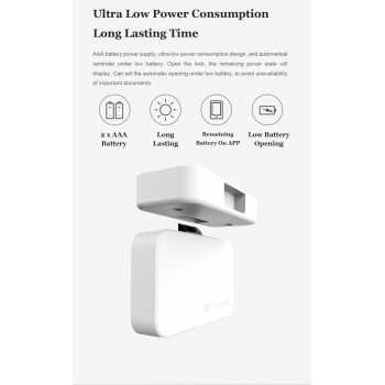 Ganti kunci mekanik konvensional yang mudah hilang dengan YEELOCK Mijia smart lock. Terintegrasi dengan aplikasi Mijia yang terkoneksi melalui Bluetooth 4.0, Anda dapat mengunci dan membuka laci dalam sekali ketuk saja melalui smartphone. Menggunakan 2 baterai AAA dengan konsumsi daya yang sangat rendah sehingga tahan lama. Status daya bisa dilihat melalui aplikasi dan kunci akan terbuka otomatis bila baterai sudah mau habis, sehingga tidak akan ada barang yang tidak sengaja terkunci. Amankan dokumen penting atau barang berbahaya dari jangkauan anak-anak.