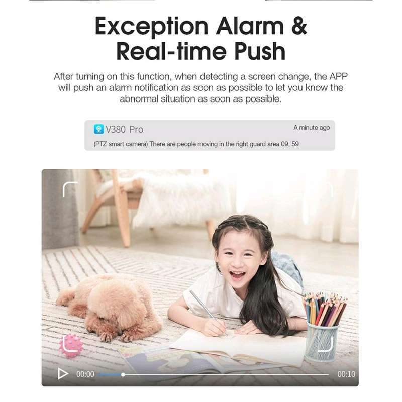 | Canggih dengan Alarm dan AI Anda bisa mengaktifkan fitur alarm yang akan mengirimkan notifikasi jika terjadi pergerakan yang tidak normal. Tidak perlu khawatir akan kesalahan pengenalan karena CCTV mengadopsi sistem pengenalan AI yang akurat. |