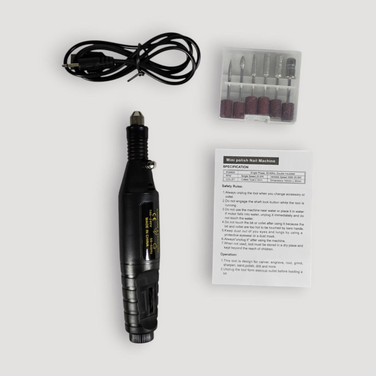 | Berbagai Mata Poles Tidak hanya membersihkan cat kuku, Anda juga dapat mengangkat kulit mati dan kutikula, meratakan permukaan kuku, hingga membuatnya mengilap. Hal ini berkat 6 mata bor (grinding head) dan 6 sanding head yang dapat dikombinasikan dengan berbagai metode pemolesan. |