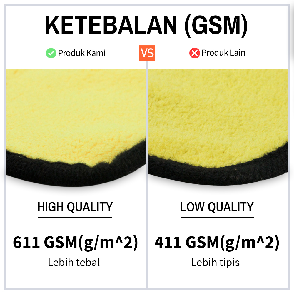 🔹 Kain lap microfiber memiliki ketebalan 611 GSM, lebih tebal dari kain microfiber lainnya.