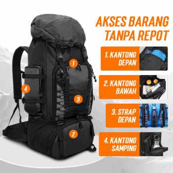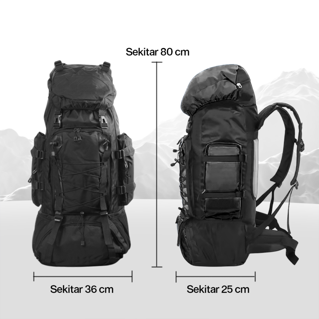 | Bawa Semua Kebutuhan Tas gunung berkapasitas 90 L ini menyediakan ruang melimpah untuk seluruh perlengkapan hiking, mulai dari tenda, sleeping bag, hingga peralatan masak portabel. Kompartemen utama yang luas dipadukan dengan strap kompresi menjaga barang tetap rapi dan stabil di berbagai medan. Desain ergonomis membantu mendistribusikan beban merata, mengurangi tekanan pada punggung saat pendakian panjang. |