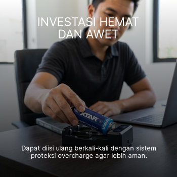 | Rechargeable / Isi Ulang Sebagai XTAR Baterai 26650, produk ini dapat diisi ulang berkali-kali untuk penggunaan jangka panjang. Lebih hemat dibanding baterai sekali pakai. Solusi ekonomis dan ramah lingkungan. |