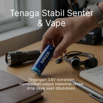 | Tegangan Stabil 3.6 V Menghasilkan output tegangan 3.6 V yang konsisten agar performa perangkat tetap optimal. Sangat cocok untuk alat elektronik dengan kebutuhan daya stabil. Membantu penggunaan lebih efisien dan maksimal. |