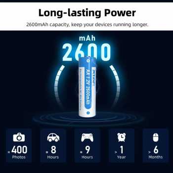 | Efisien dengan Kapasitas Besar Baterai AA Anda cepat habis saat digunakan? Tidak perlu resah, karena kini hadir baterai Ni-MH berkapasitas 2600 mAh. Kapasitas yang sangat besar untuk mendukung penggunaan perangkat elektronik. Tidak perlu sering ganti baterai, lebih hemat waktu dan biaya. |