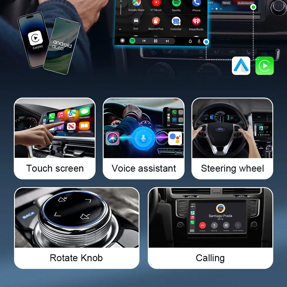 | Fleksibel ke Sistem Mobil Wireless CarPlay bisa tersambung dengan tombol kontrol di setir mobil, membuat Anda bisa memutar atau mengganti musik selanjutnya dengan lebih mudah. Selain itu, alat ini juga bisa tersambung dengan asisten pintar seperti Siri atau Google Assistant. |