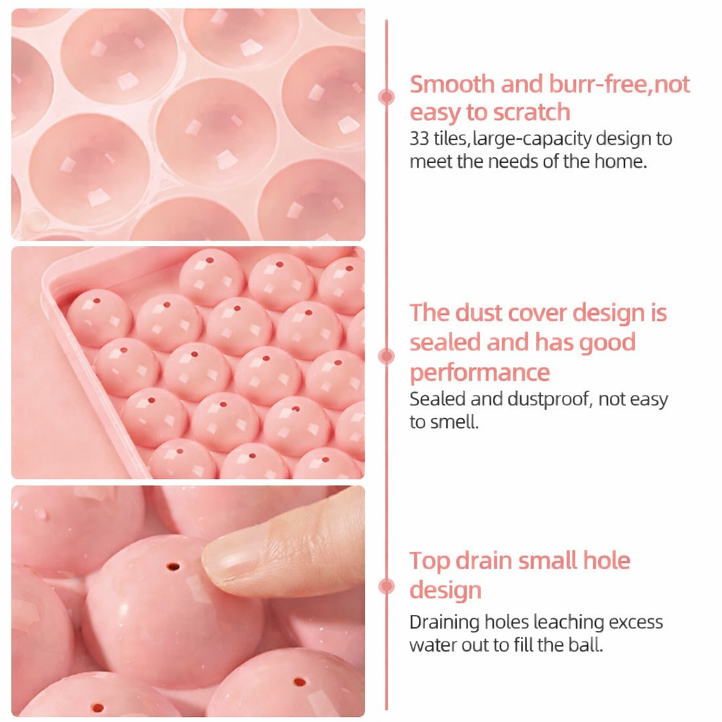 Apakah Anda suka menikmati minuman segar yang dilengkapi dengan es batu? Jika iya, maka Anda harus siap sedia cetakan agar es batu selalu siap untuk digunakan. YENLEE hadir menghasilkan es batu dengan bentuk seperti bola. Cetakan ini mampu menghasilkan hingga 33 es batu bulat sekaligus, sehingga Anda tidak perlu membuat es berulang kali. Kapasitas besar, berbahan silikon, minuman segar untuk banyak orang dapat disiapkan dengan cepat.