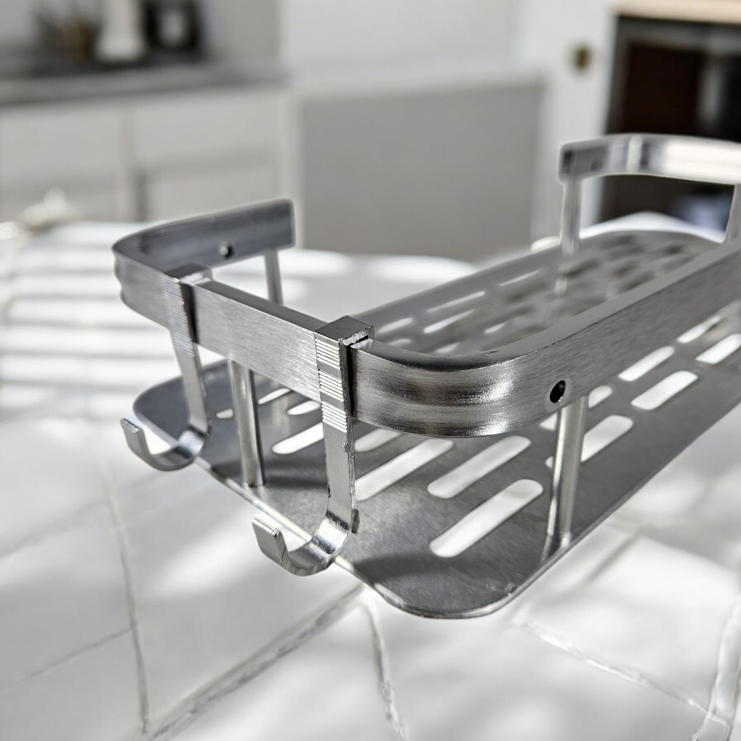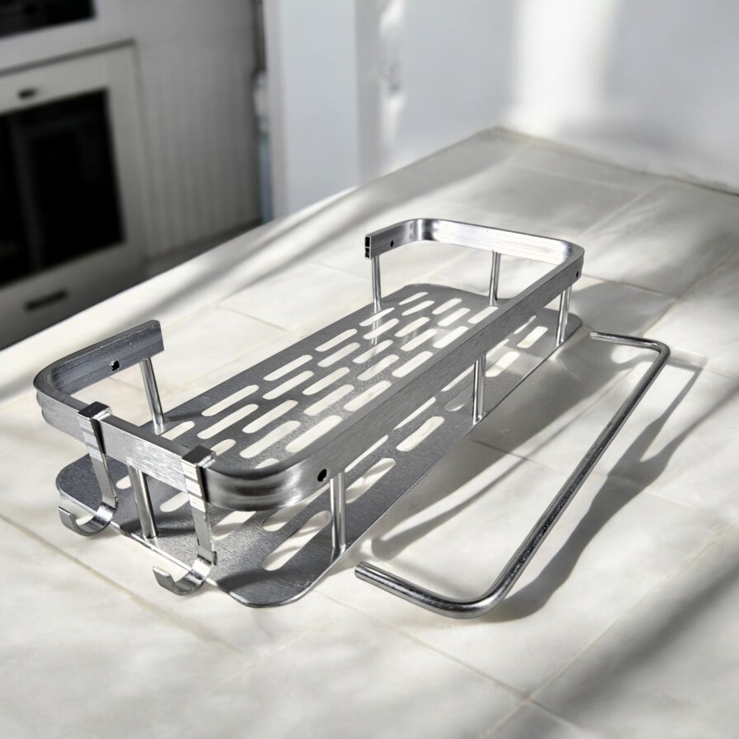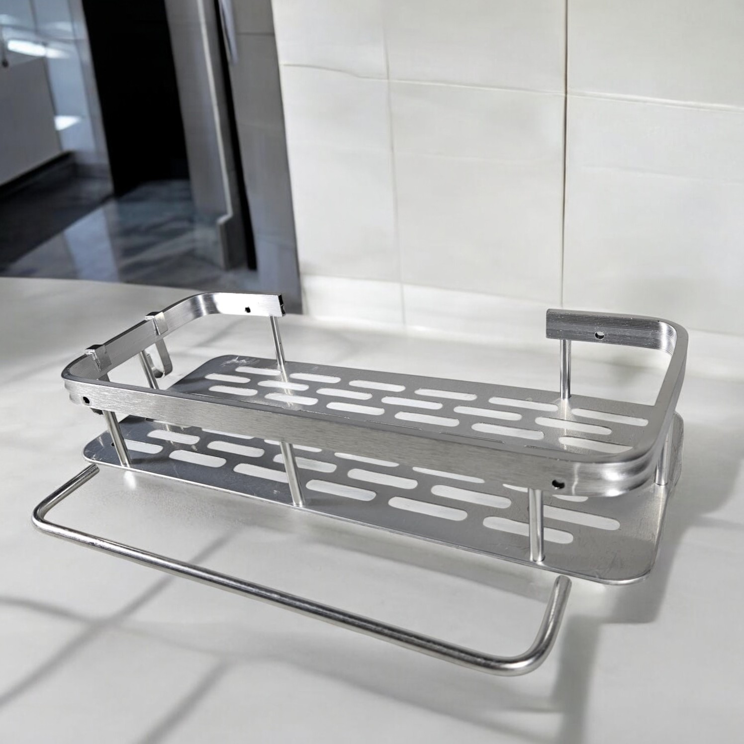 | Bahan Aluminium Terbuat dari bahan aluminium berkualitas yang mampu menahan beban perlengkapan mandi Anda. Bahan ini juga kokoh dan tidak mudah rusak sehingga cocok untuk penggunaan jangka panjang. |